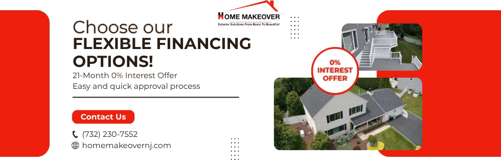 At Home Makeover LLC, we specialize in exterior home improvements, including siding (vinyl, James Hardie, insulated, stone, and designer siding), roof replacement and repairs, gutter repair, window replacement, and deck remodeling. We proudly serve homeowners in Monmouth, Middlesex, and Mercer Counties with high-quality, lasting results.