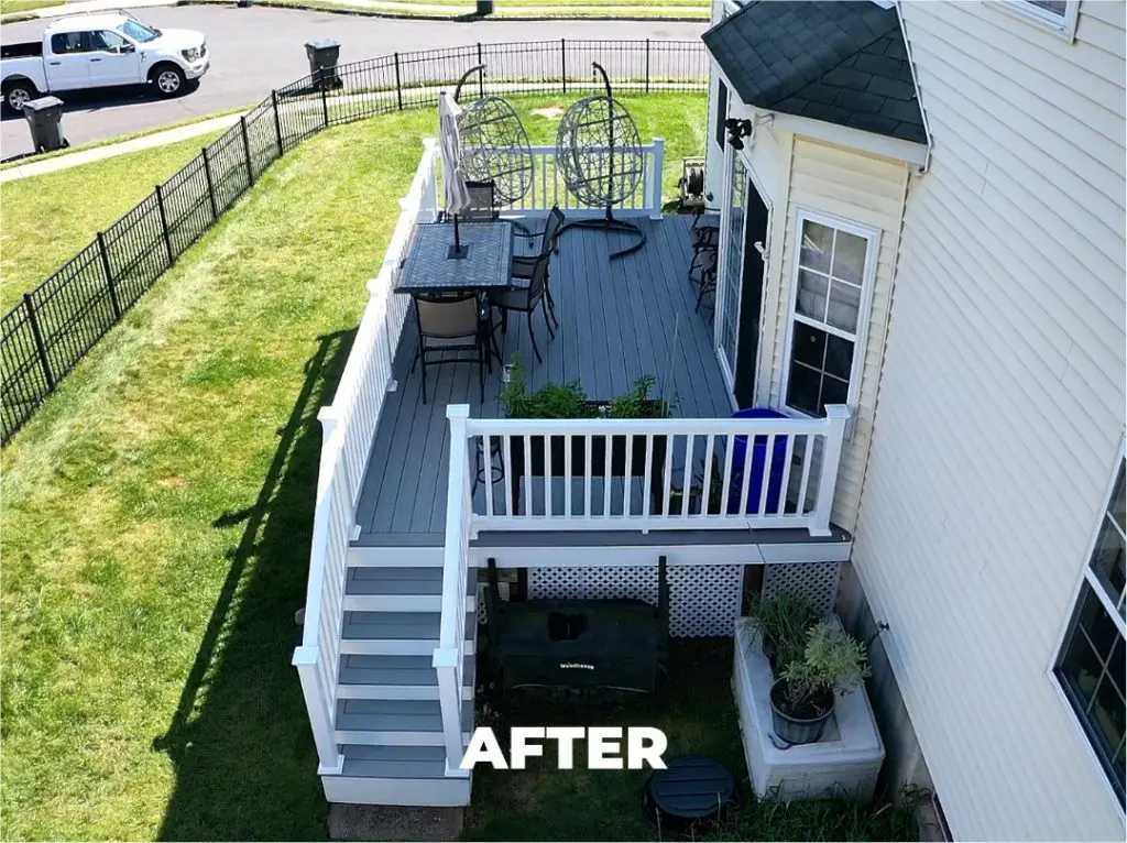 There’s something truly refreshing about seeing a space come to life with thoughtful details and timeless color. This Bridgewater, NJ project is a perfect example of how the right decking choice, paired with sharp craftsmanship, can elevate outdoor living. The Cottage Grey tone sets a calming, modern mood while contrasting white elements bring a crisp finish that stands out. As you scroll through the before-and-after images, notice how clean lines and picture-framed precision turn a simple update into a standout feature. It’s more than a makeover, it’s a smart, stylish way to make your backyard a true extension of your home.
