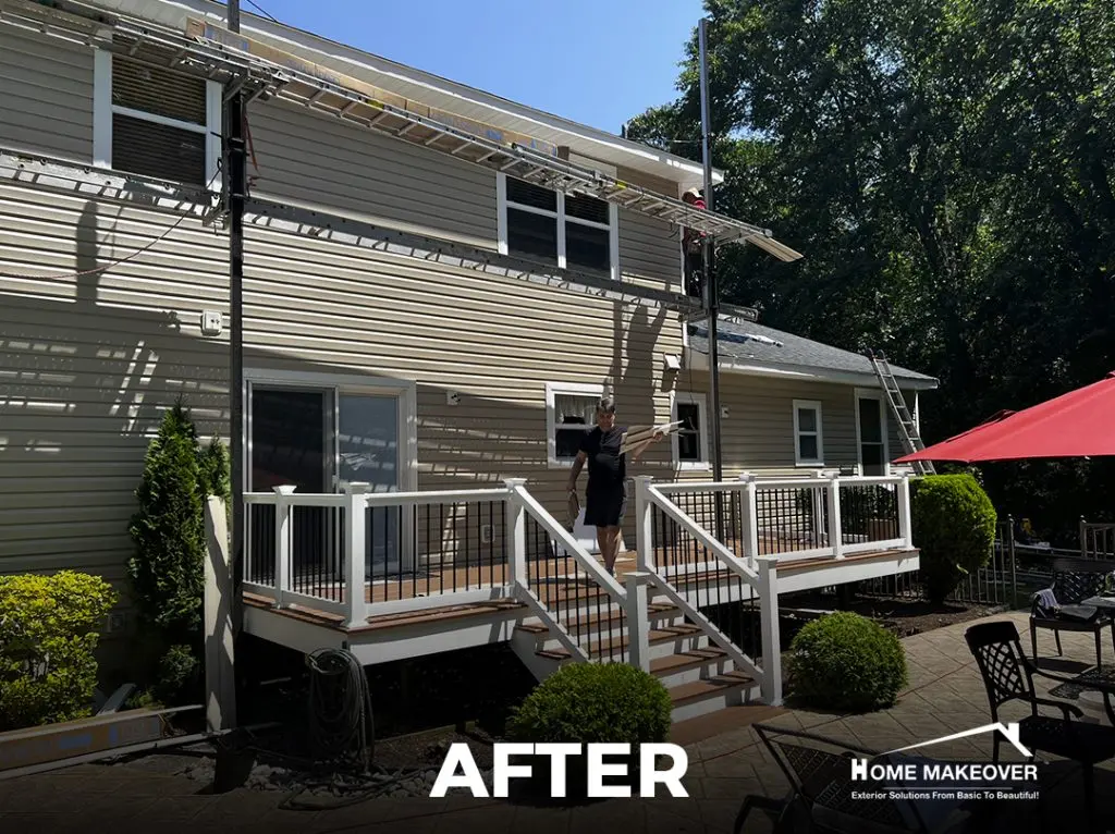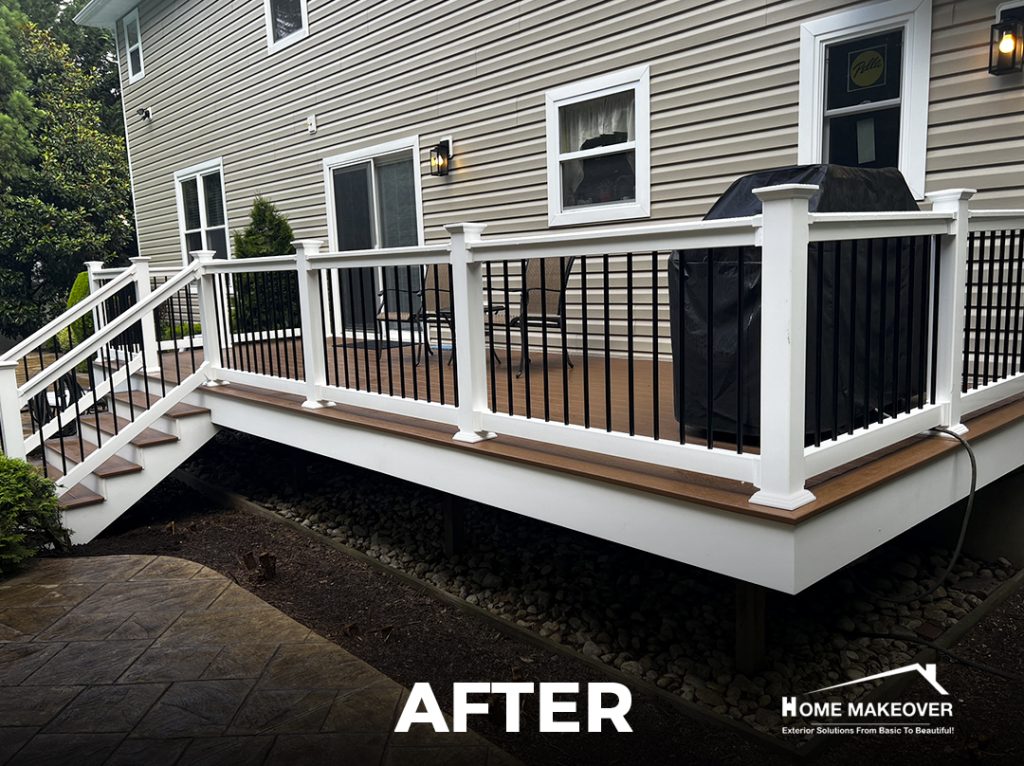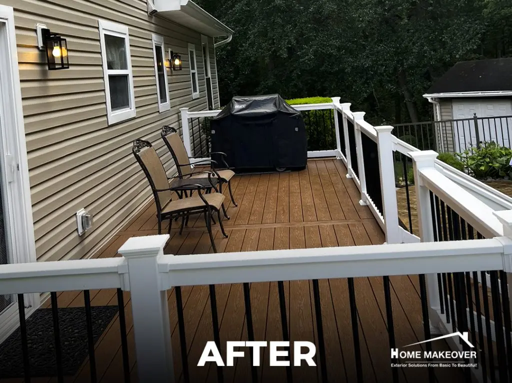 Every piece was precisely measured and installed for long-lasting durability and a seamless finish. Working with a 5 star rated deck installation contractor ensured this project met high standards for both design and structure. As with all full replacement projects, this one is protected by the exclusive Home Makeover Lifetime Workmanship Warranty, offering lasting peace of mind. The final result is a warm, inviting space perfect for relaxing or entertaining outdoors.