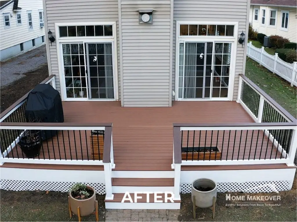 A deck replacement can redefine the way you enjoy your outdoor space and this transformation in Red Bank, NJ, is proof. From tired and outdated to stylish and cohesive, the results speak for themselves. The updated color scheme and refined finishes bring new life and elegance to the backyard, offering a seamless extension of the home’s living space. With careful attention to detail and expert execution, the revamped deck not only improves functionality but also adds lasting visual appeal. Scroll through the before-and-after images below to see how Home Makeover turned this ordinary deck into an inviting, modern retreat.