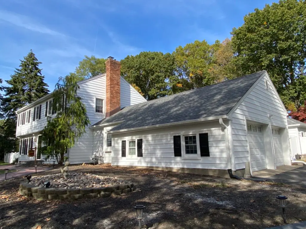 These homeowners in Holmdel needed fresh siding on their home and pool house. The existing siding had yellowing, cracks, and other damage. We refreshed the home and pool house with Certainteed Mainstreet Vinyl Siding in colonial white, complete with a Lifetime Fade Resistance Warranty.
