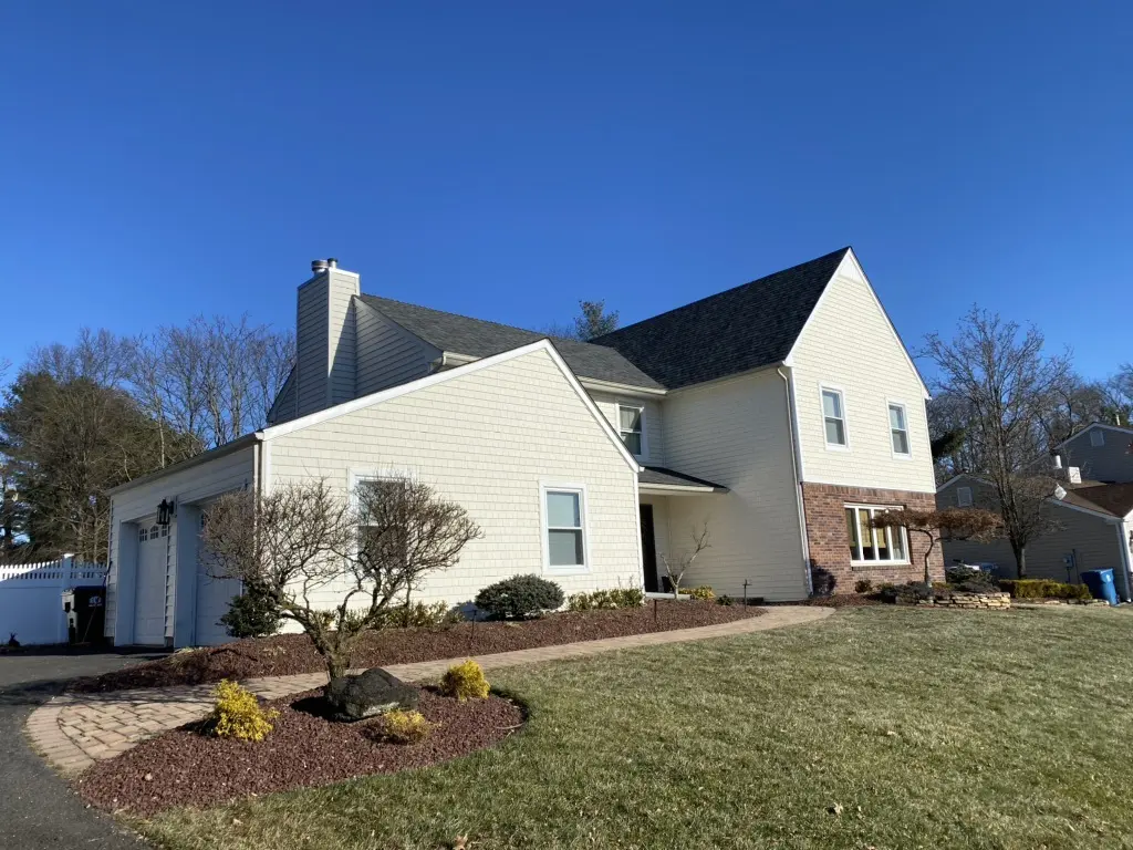 A siding and roof upgrade can completely redefine the character of a home, and this Marlboro, NJ transformation is proof. The homeowners envisioned a more refined look, and the results speak volumes. From outdated stucco to sophisticated beige designer siding accented with Rustic Hill® Cape Cod shingles, every detail was chosen with style in mind. The new Estate Grey roof brings cohesion and contrast, while crisp white trim adds the perfect finishing touch. These before-and-after images highlight the remarkable change in curb appeal and overall aesthetic. See how a thoughtful exterior update can make your home feel brand new.
