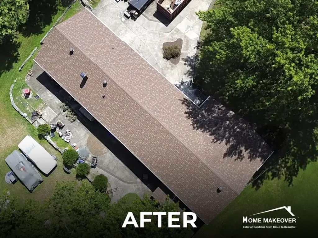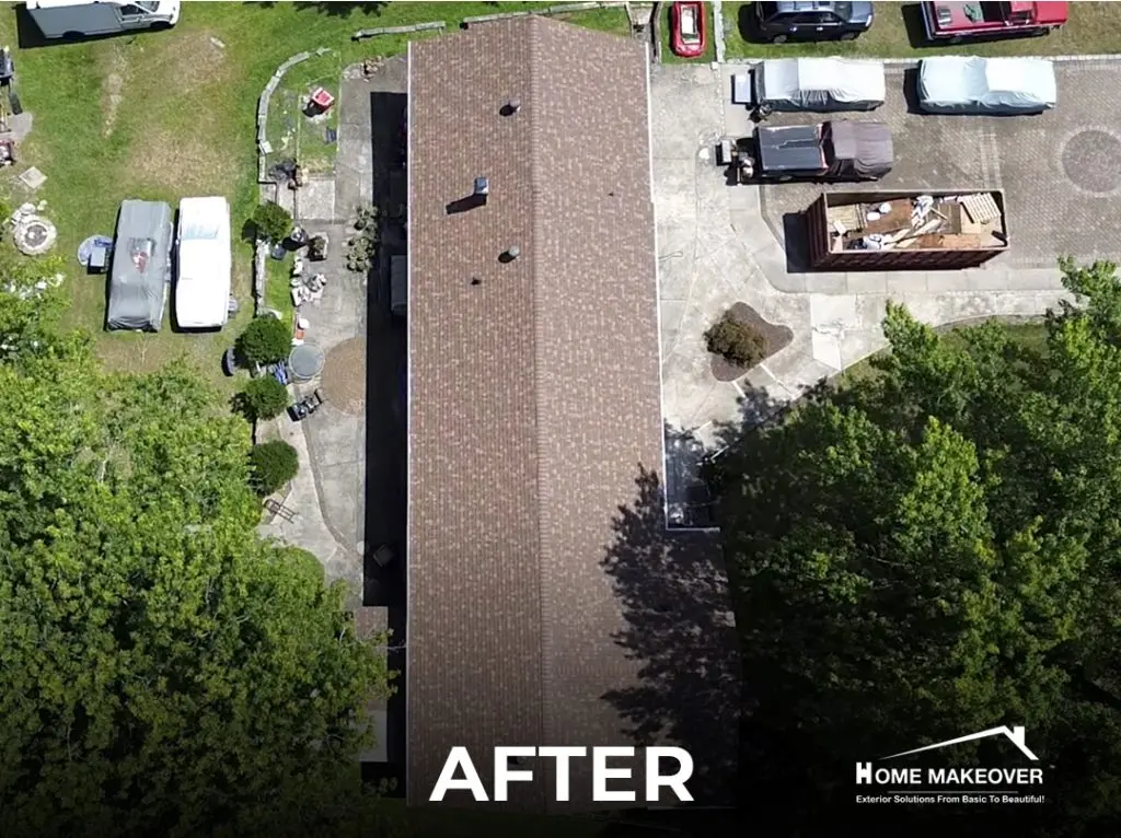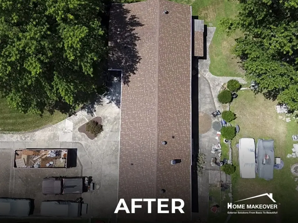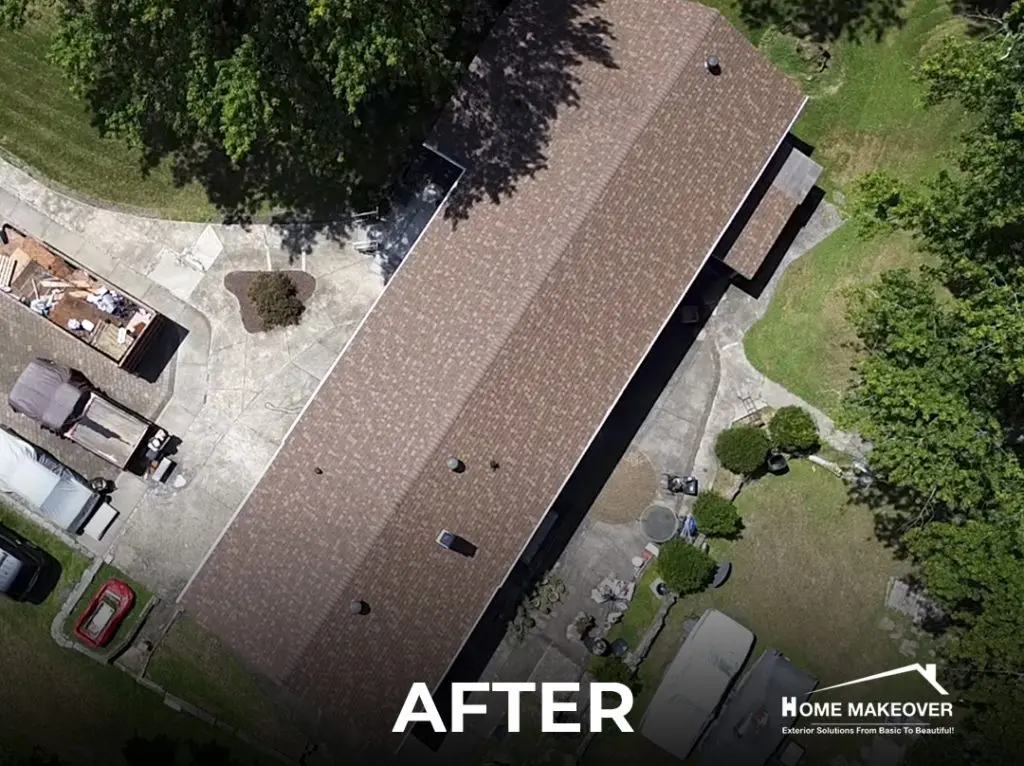 We installed Owens Corning shingles in Desert Rose, giving the home a refreshed and balanced look that fits perfectly with its surroundings. White edge metal added a clean trim along the roofline, while new brown chimney flashing tied in smoothly with the rest of the design. During the process, we also noticed a lack of attic ventilation, so our team cut in and installed a ridge vent to meet NJ Building Code and improve airflow. The kind of detail-driven work that sets apart a trusted local roofing contractor in New Jersey.