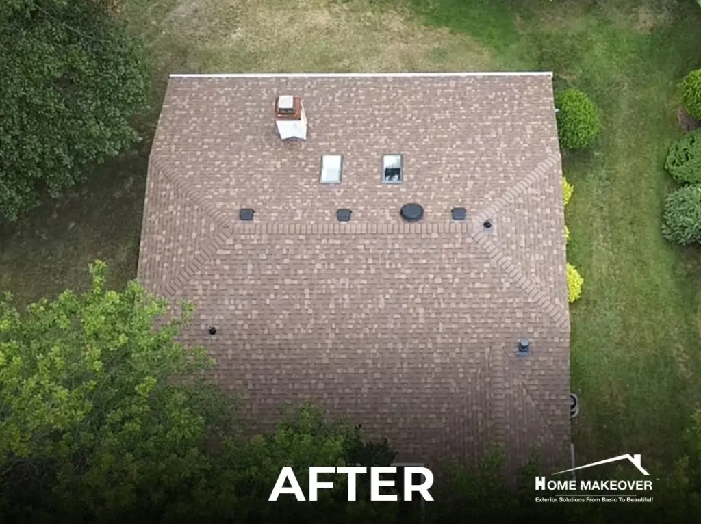 In Marlboro Township, this home needed a complete roof replacement after years of buildup from multiple roofing layers. Our crew carefully removed all three layers of old materials to expose the original wood sheathing. This step ensured a clean, solid foundation for the new system to perform at its best. We then installed Owens Corning shingles in Desert Rose, giving the roof a warm, timeless look that complements the home’s exterior.