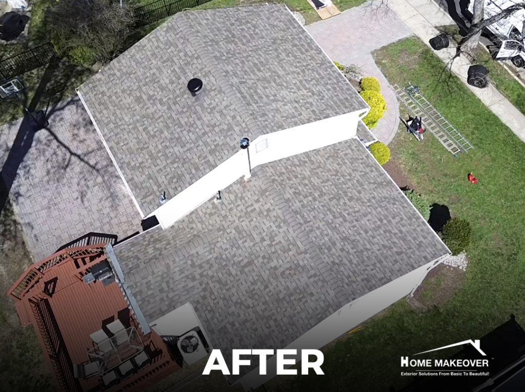 Using Owens Corning TruDefinition Duration® shingles with algae resistance, we installed a roof built to handle New Jersey’s changing weather while keeping its color and appeal for years to come. The Driftwood shingle color blended beautifully with the home’s exterior, complemented by crisp white edge metal and champagne-colored siding corners. We also installed a new universal furnace pipe cap for better ventilation and protection. Every detail was handled with care to ensure the home not only looked great but performed even better.