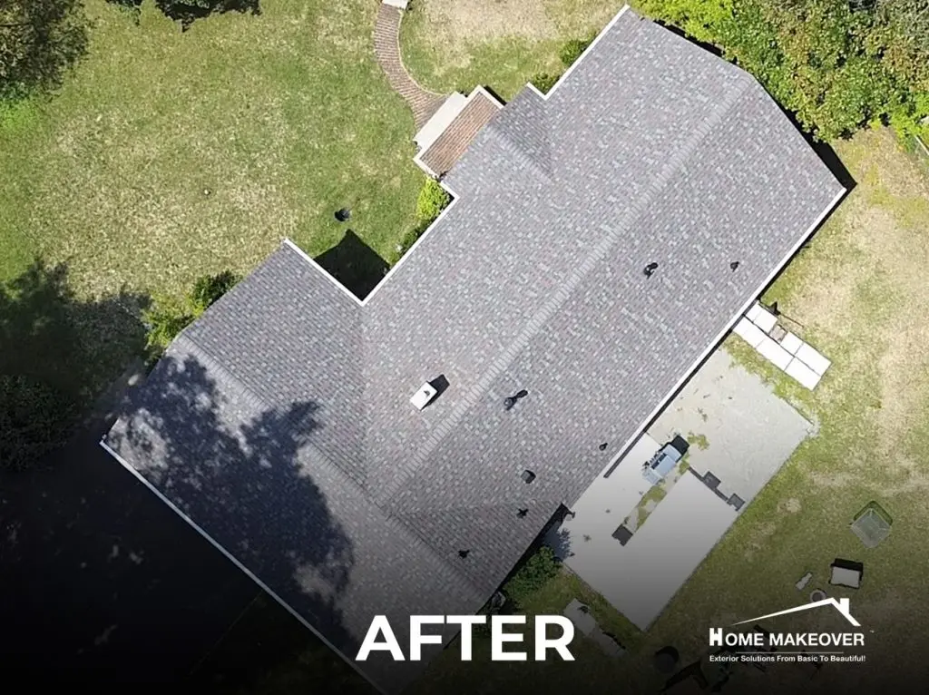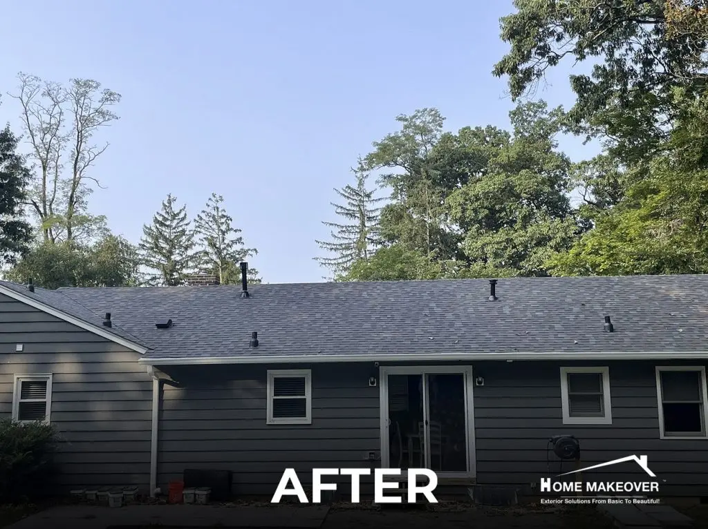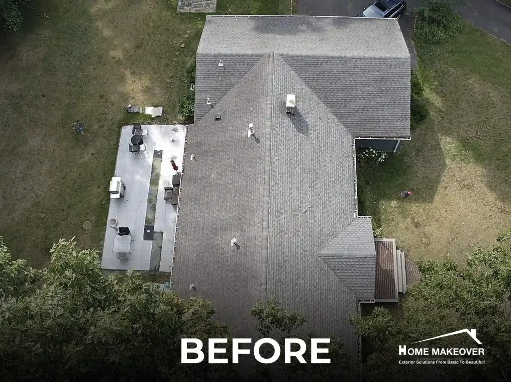 A roof replacement is not just a structural upgrade, it’s a visual and functional refresh that redefines the entire home. These before-and-after images from our Tinton Falls, NJ project highlight how the right combination of design choices and expert execution can completely elevate a property’s exterior. With crisp white edge metal and a complementary Colonial Slate finish, the result is clean, cohesive, and built to last. The enhanced chimney detailing adds both style and protection, blending beautifully into the roofline. See for yourself how this transformation reflects the care, precision, and quality that Home Makeover brings to every project.
