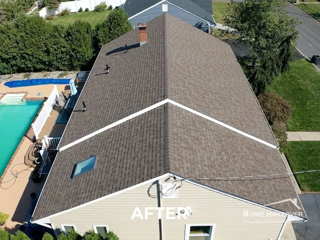 A new roof is more than just protection, it’s a statement of style and function. These before-and-after photos highlight the stunning transformation of this Raritan, NJ, home after a professional roof replacement. With expert installation and premium materials, the project enhances the home’s structural integrity while giving it a fresh, polished look. The addition of skylights brings in natural light, creating an inviting interior atmosphere. This project stands as a testament to how the right roofing solution can improve a home’s value, comfort, and aesthetics – turning a vision into a lasting reality. Let’s make your home next on the list.
