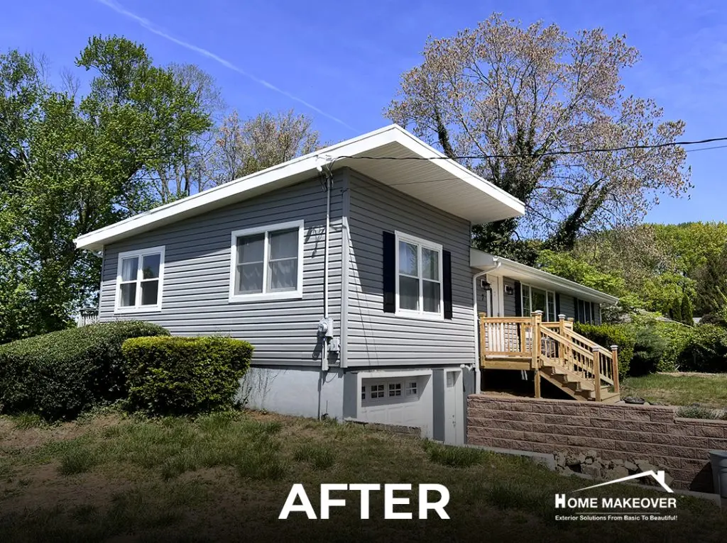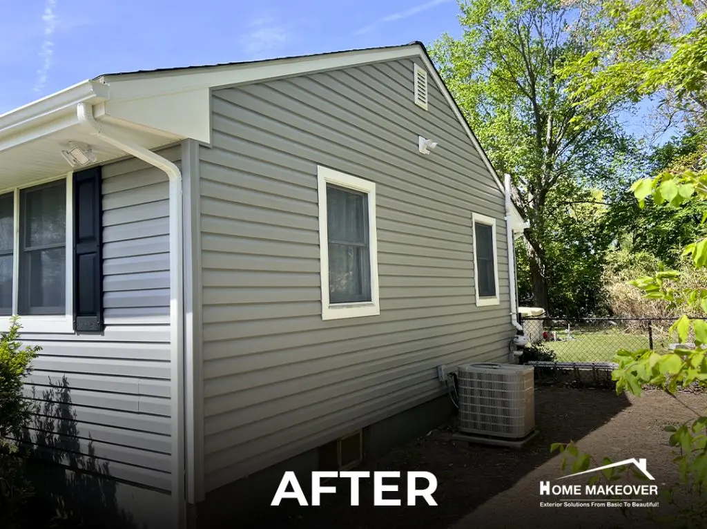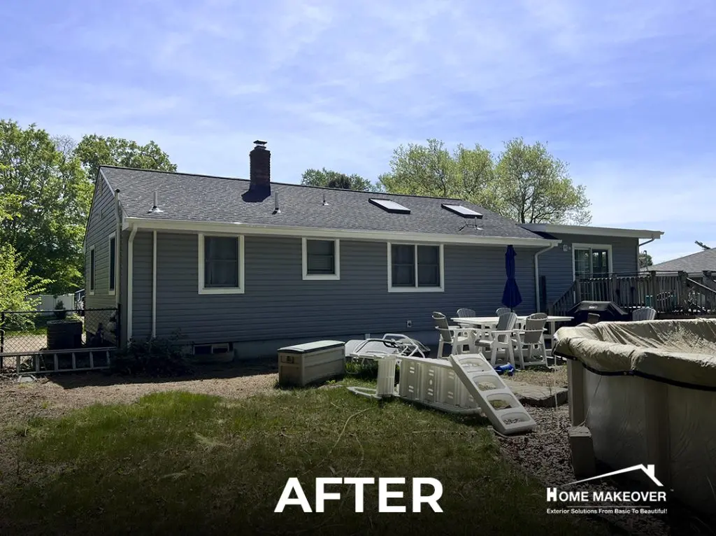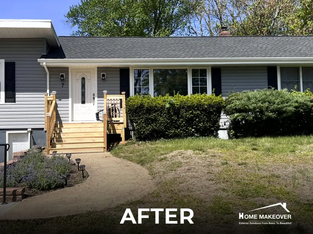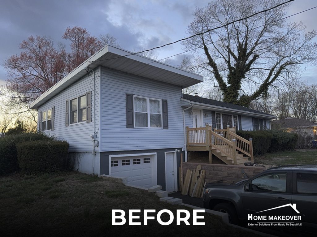 This recent siding replacement in Middletown, NJ gave this home a clean, updated look with a timeless color palette. The old siding was completely removed down to the wood sheathing to ensure a proper and long-lasting installation. Our crew installed Norandex® Performance Vinyl Siding in a 5″ Dutchlap style, choosing the elegant Granite tone for both the siding and outside corners. To complete the contrast, the fascia, soffit, window, and door trims were finished in crisp White, creating a fresh, classic look.
