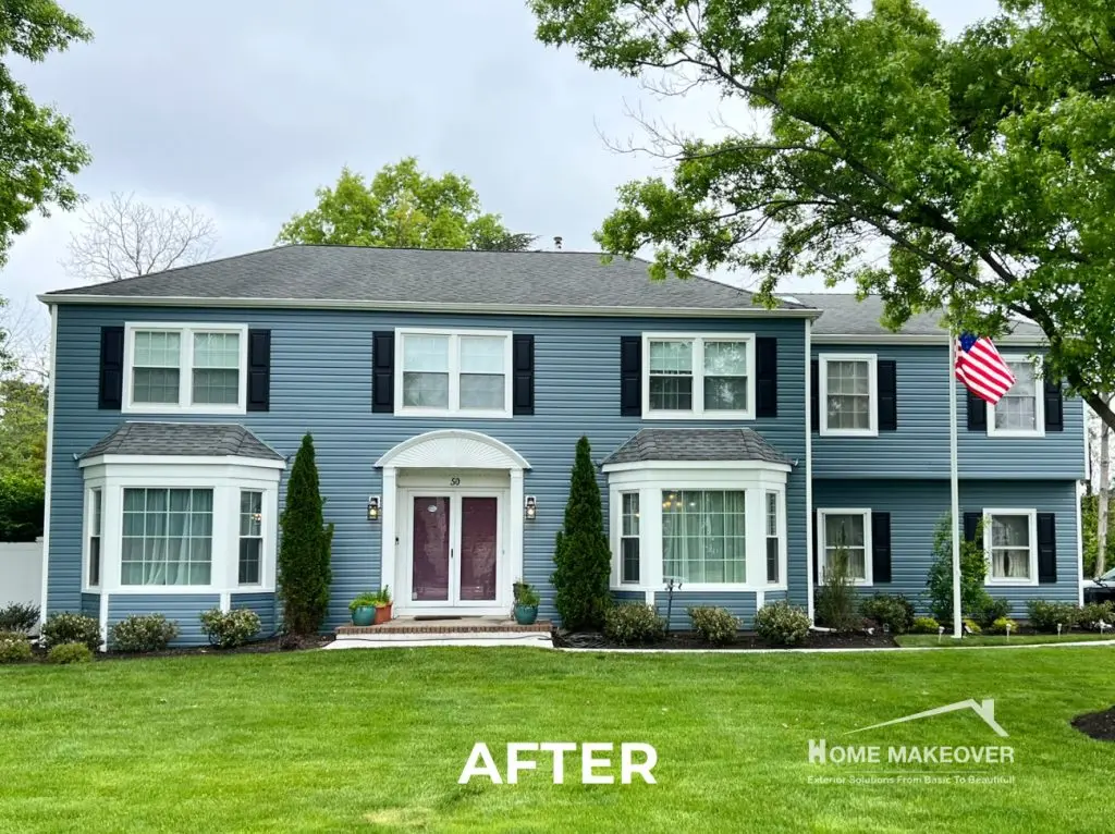 A siding replacement is more than just a facelift, it’s a complete refresh that elevates the entire look and feel of a home. This Shrewsbury, NJ project showcases how thoughtful design choices and expert craftsmanship can breathe new life into a property. From the striking Geneva Blue clapboard siding to the bold black shutters that frame each window, every detail comes together to create a crisp, polished finish. The clean lines, seamless transitions, and complementary color palette not only enhance the home’s curb appeal but also showcase the power of a well-executed siding transformation. Let’s make your home the next standout on the block.