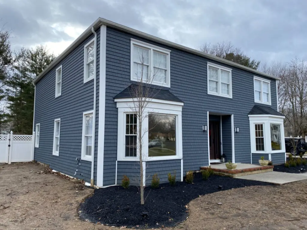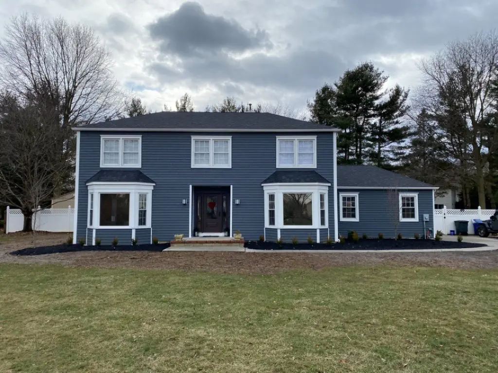 A full exterior renovation has the power to completely redefine a home’s character, and this project in Shrewsbury, NJ, is a stunning example. From the aged 1987 roof to the dated stucco siding, every element has been expertly replaced with premium materials and modern finishes. The dramatic transformation highlights the bold contrast of the Onyx Black roof against the Steel Blue siding, creating a vibrant and refreshed look. These before-and-after images tell the story of renewed charm, enhanced safety, and lasting curb appeal. It is a proof of what’s possible with Home Makeover’s skilled craftsmanship and attention to every detail.