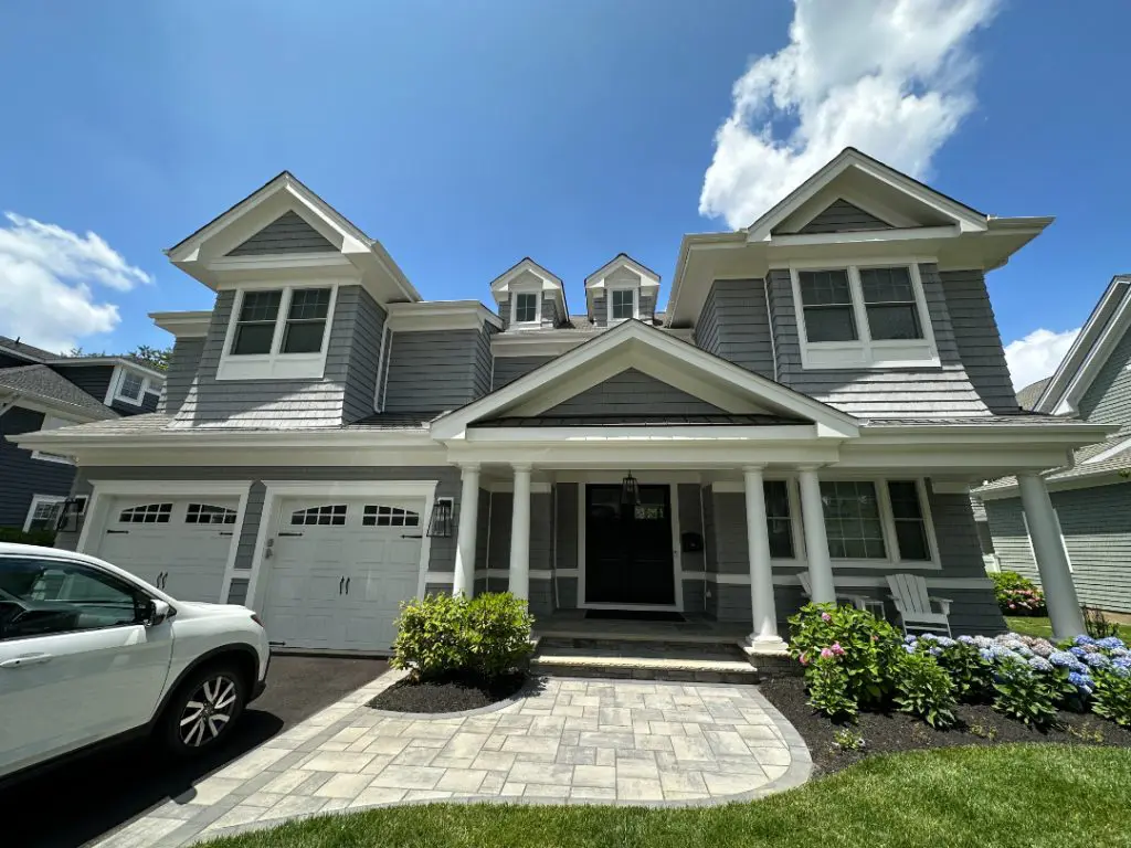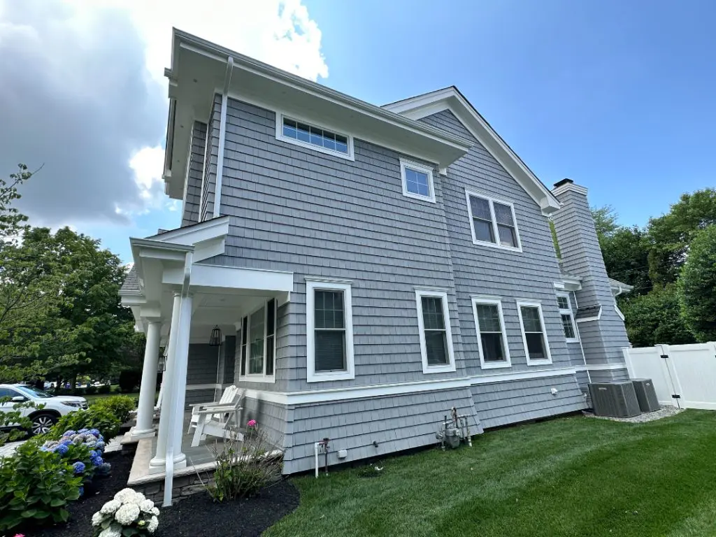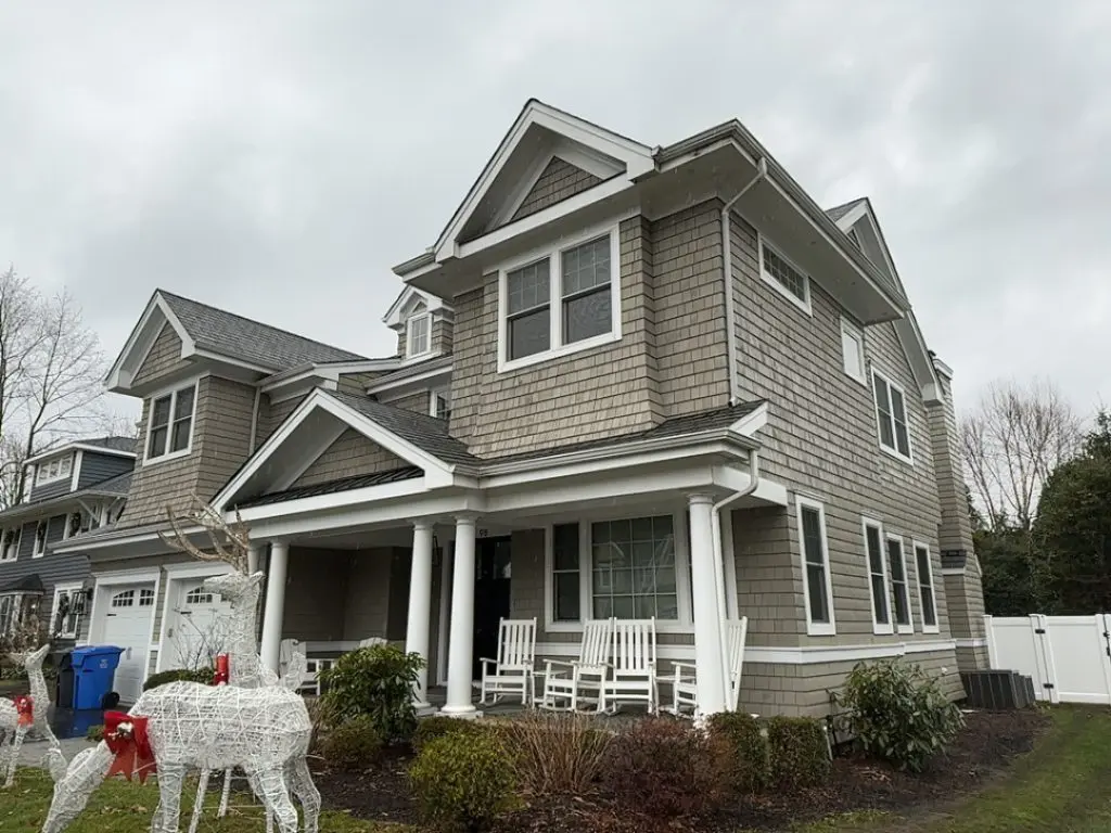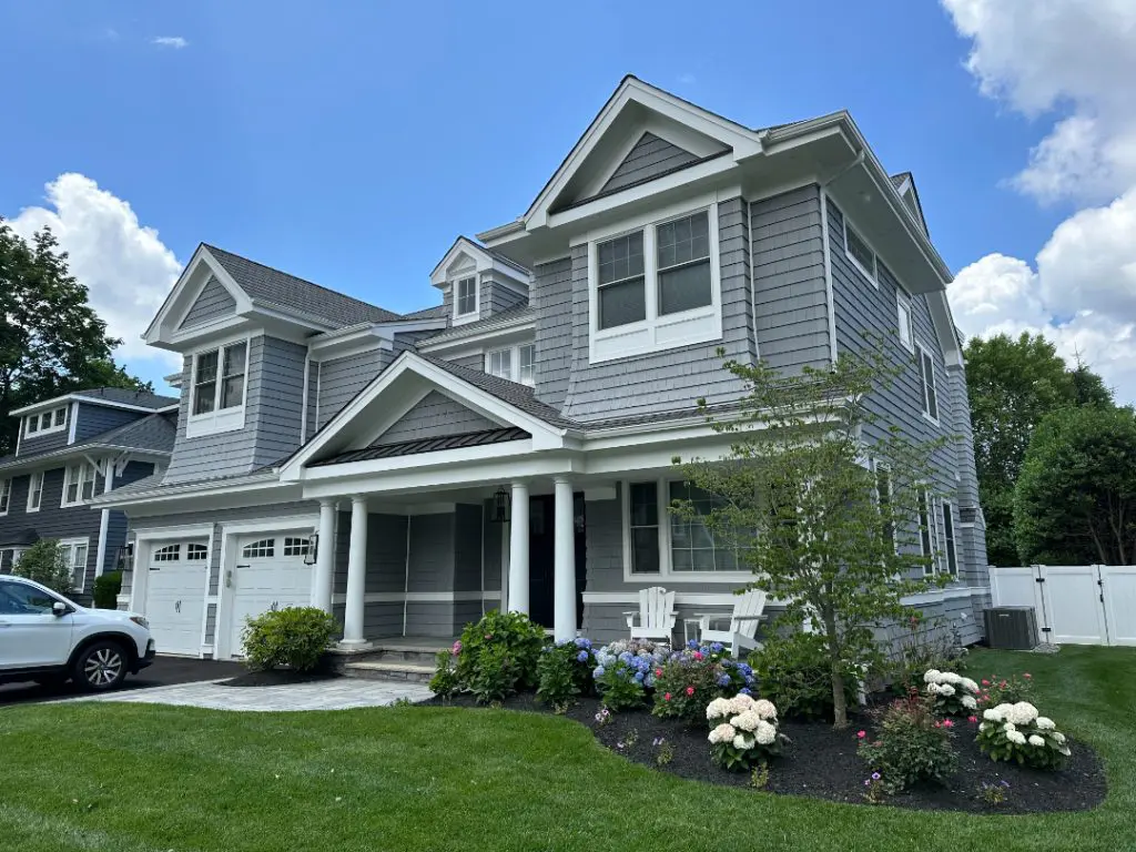 When these homeowners in Fair Haven, NJ, initially contacted us, they knew they wanted to get rid of the existing wood siding that was deteriorating and required constant maintenance. After talking with our experienced NJ exterior home remodeling contractors, the homeowners decided on new polymer cedar impression siding, trim, soffits, and gutters. These decisions led to a home makeover that genuinely transformed the exterior of this beautifully shaped home.