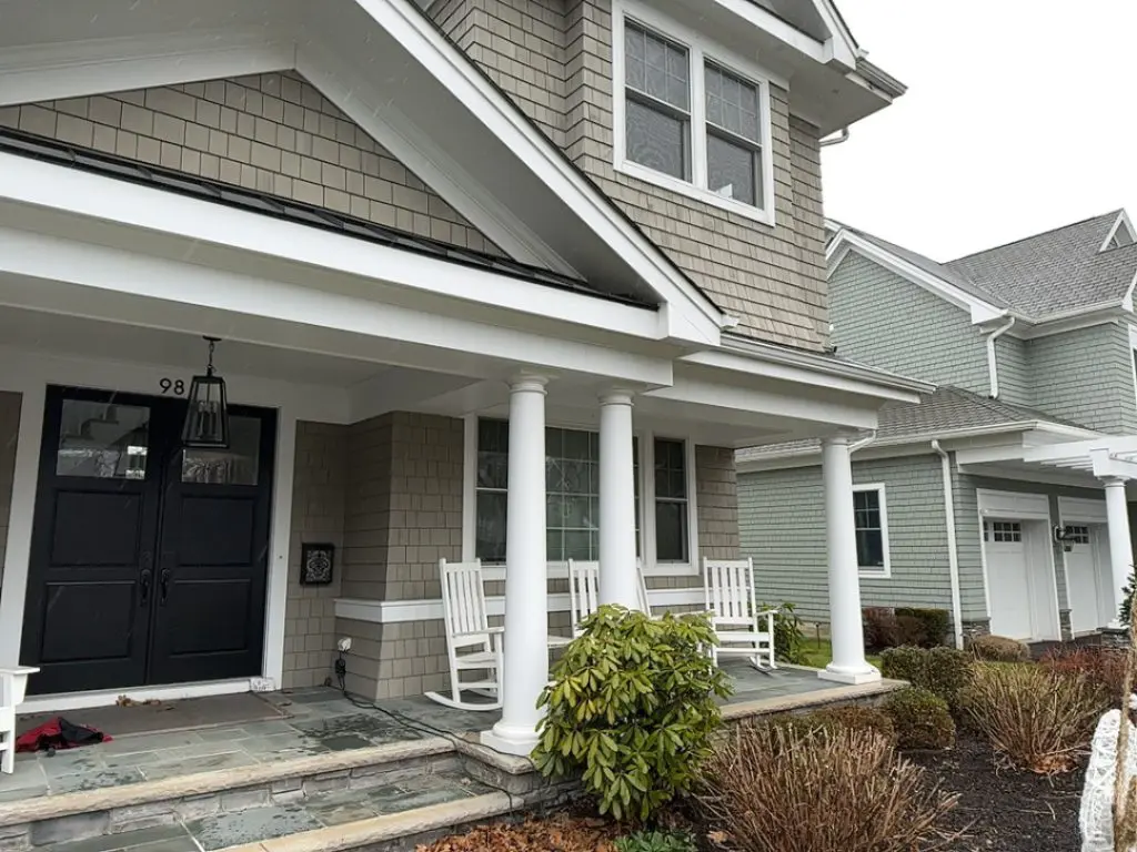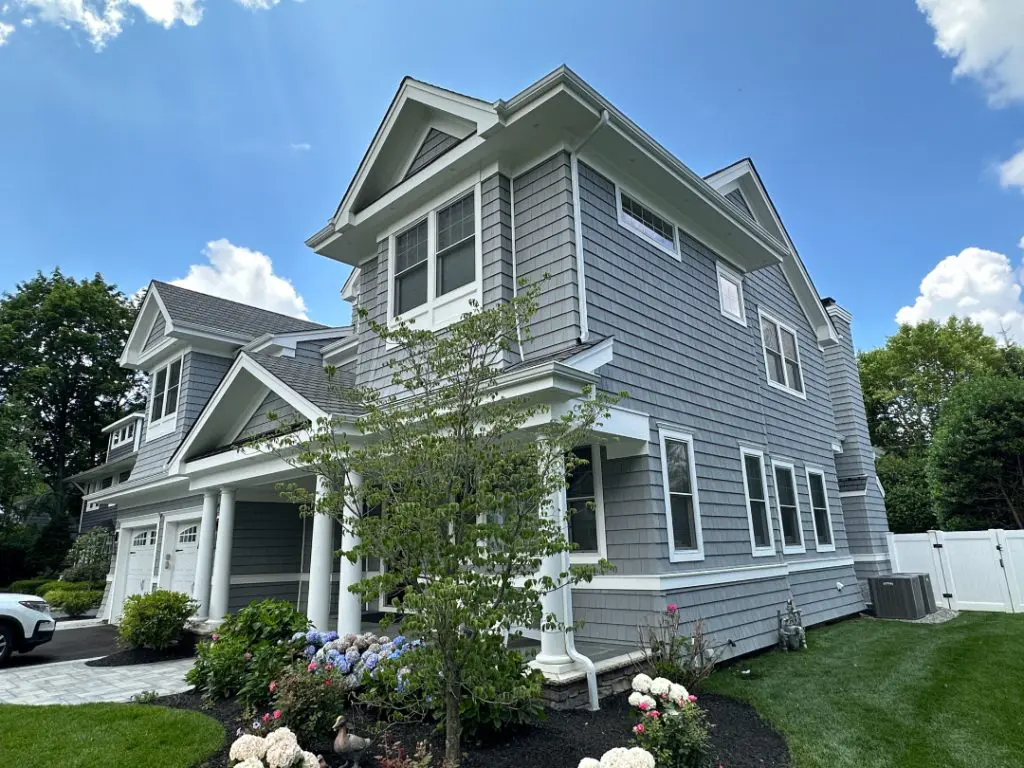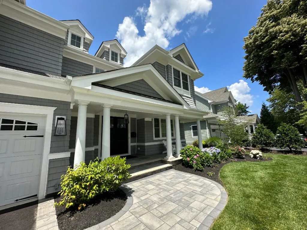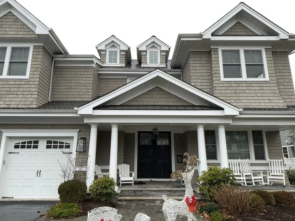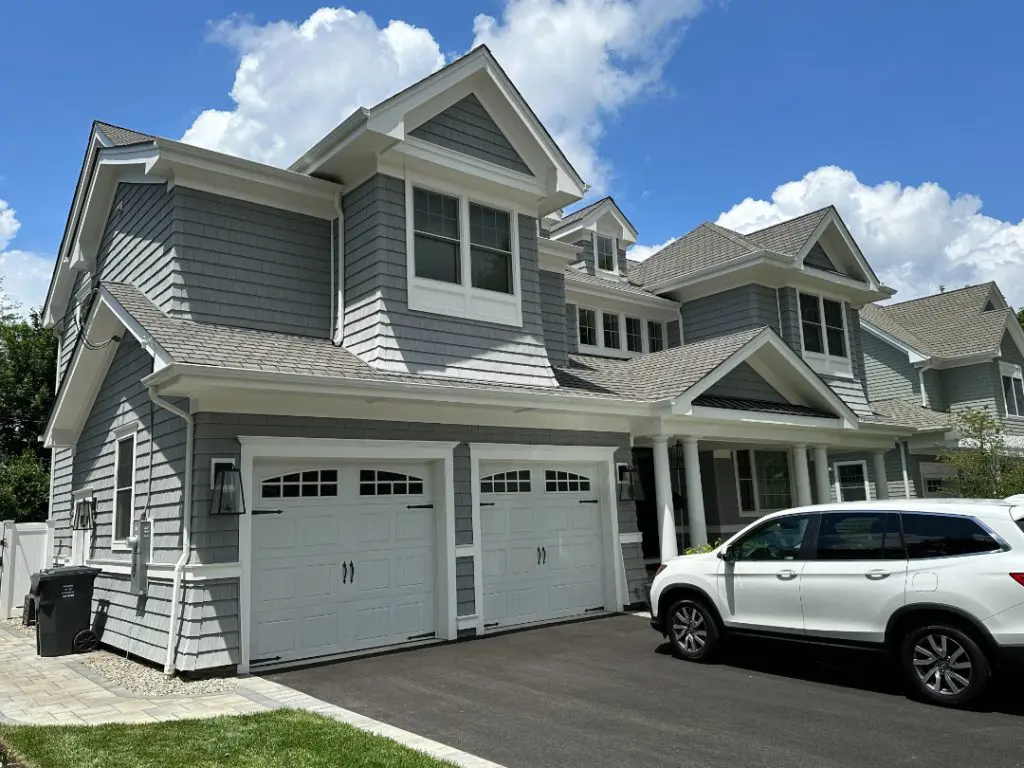 When these homeowners in Fair Haven, NJ, initially contacted us, they knew they wanted to get rid of the existing wood siding that was deteriorating and required constant maintenance. After talking with our experienced NJ exterior home remodeling contractors, the homeowners decided on new polymer cedar impression siding, trim, soffits, and gutters. These decisions led to a home makeover that genuinely transformed the exterior of this beautifully shaped home.
