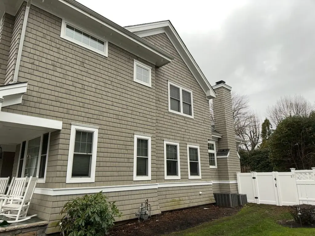 A complete siding, trim, and gutter replacement can dramatically elevate a home’s appearance and this Fair Haven project is a perfect example. These before-and-after images capture the stunning transformation that took place once the deteriorating wood siding was replaced with low-maintenance, long-lasting materials. The crisp lines, clean edges, and rich texture of the new exterior not only refresh the look of the home but also highlight its beautiful architectural features. With thoughtful design choices and expert installation, this renovation showcases how quality craftsmanship can bring out the best in a property. See the visual impact for yourself below.