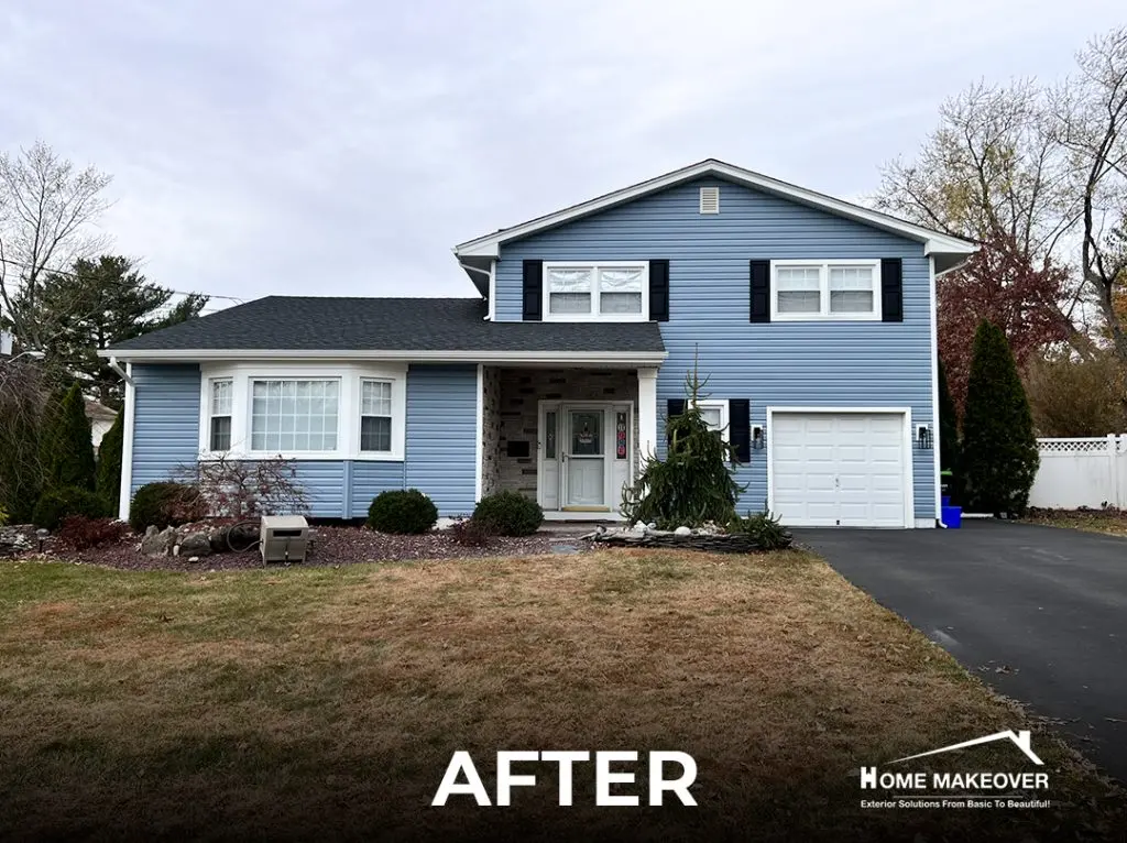 Siding upgrades can completely redefine a home’s personality, and this transformation in Old Bridge, NJ, is the perfect example. As seen in these before-and-after images, the clean lines, balanced color palette, and precise detailing bring new life to the exterior. From dull and dated to sharp and stylish, this home now stands out with timeless charm and modern efficiency. The contrast between textures, thoughtful framing, and seamless integration of stonework highlight the care and craftsmanship behind every inch. It’s not just a siding project, it’s a smart visual upgrade that delivers both beauty and performance for years to come.