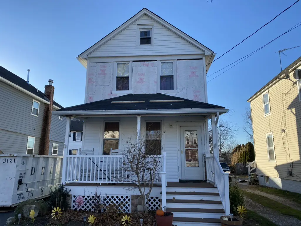 This Red Bank, NJ home was in need of a facelift. The existing siding was falling apart and the homeowner was looking to improve their curb appeal as well as protect their home from any leaks or damage. First, our installation team removed the old shingles and underlayment, and then installed a brand new, synthetic waterproof underlayment. The synthetic underlayment is made to seal over all wood sheathing around the house to prevent water or moisture from ever getting to the wood framing of the home. Next, our team installed the brand new, white clapboard style vinyl siding and black shutters. The vinyl siding was a great way for the homeowner to upgrade the exterior of their home without breaking the bank. Not only is vinyl siding cost-effective, it is also maintenance free and long-lasting!