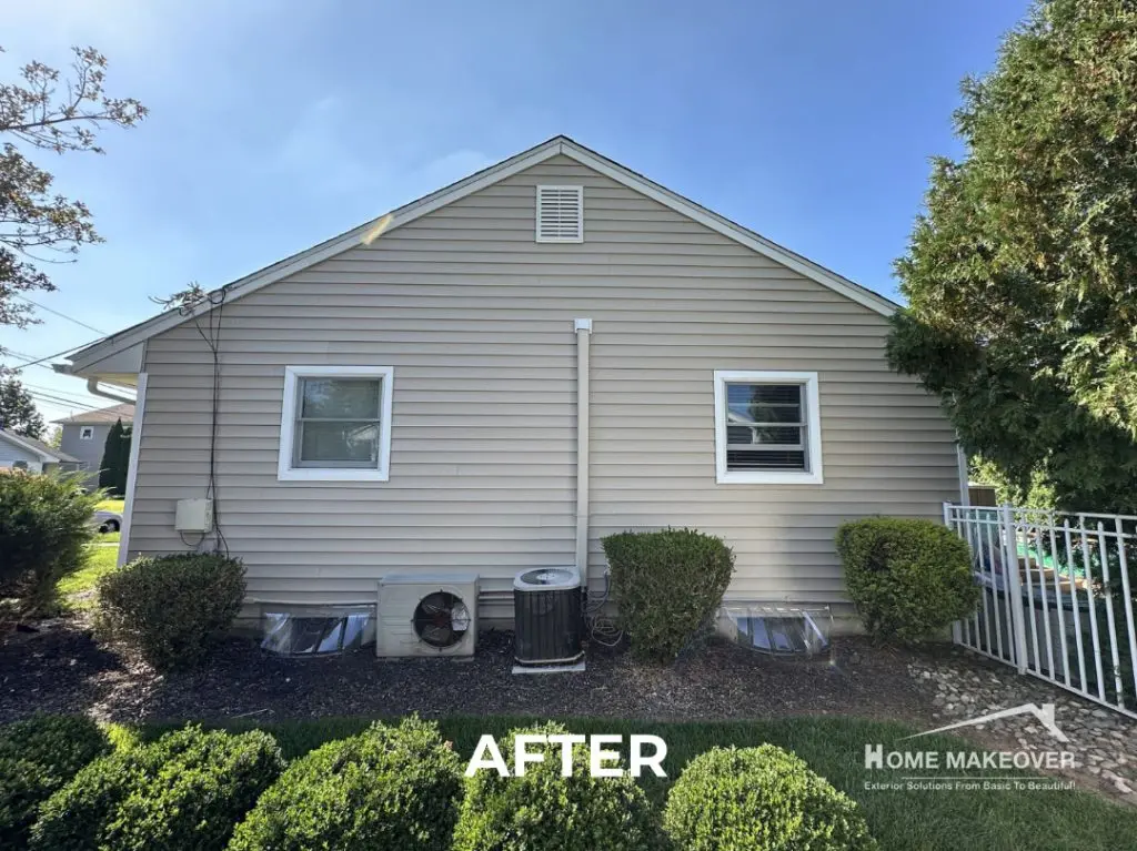 Step into the transformation of this beautiful Raritan, NJ home, where fresh siding gave the exterior a brand-new personality. Our Home Makeover team turned the client’s vision into reality by installing premium Norandex® Performance Vinyl Siding in a classic Clapboard style. The warm Sandstone color paired with bold white trims added instant charm and a crisp, polished finish. To ensure durability and a flawless look, we replaced the outdated soffits and added custom, extra-wide trim around every door and window. The result? A stunning exterior makeover that not only boosts curb appeal but also adds long-term value and protection.
