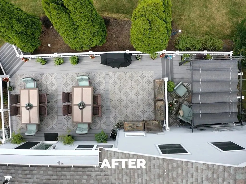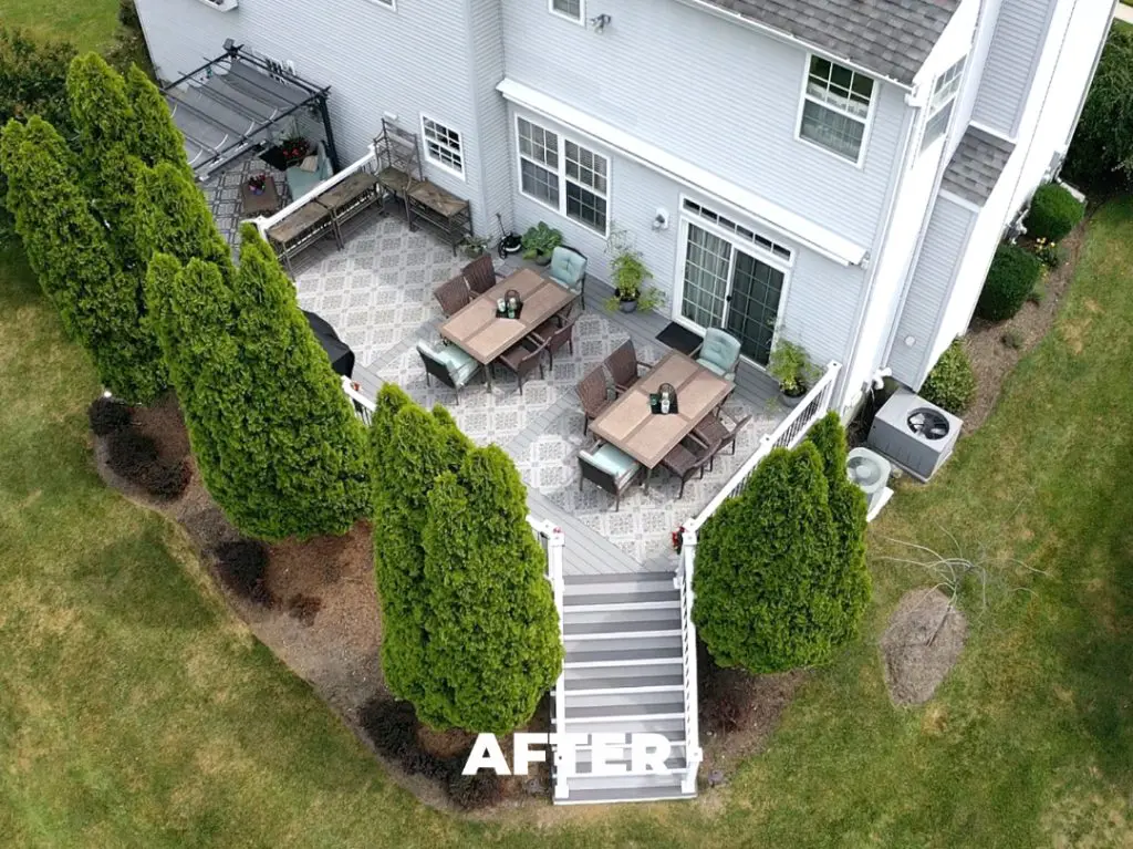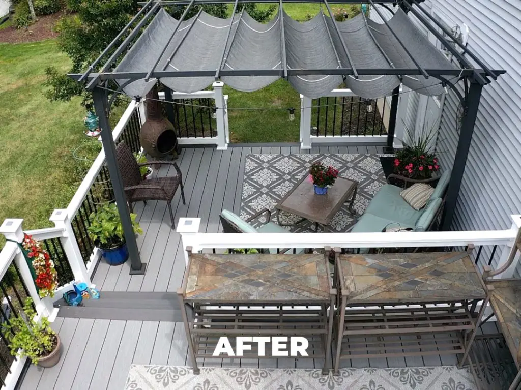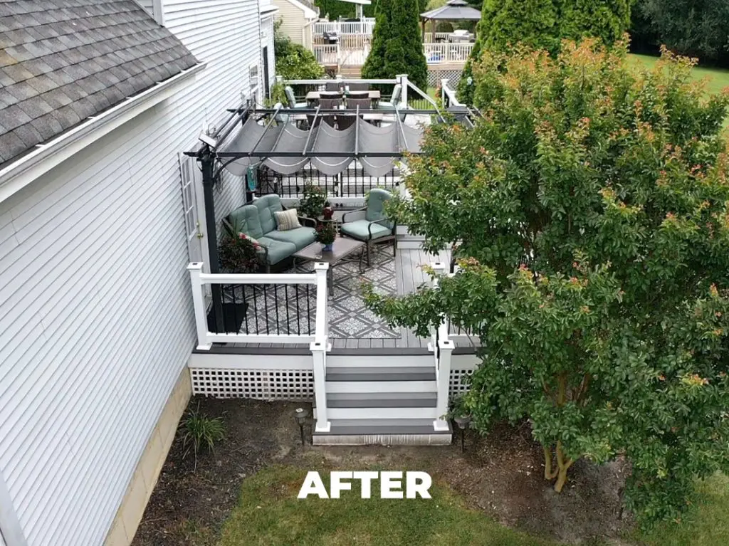 An upgraded deck isn’t just a fresh look, it’s a full transformation that redefines outdoor living. This project in Howell, NJ, beautifully highlights how smart design and clean finishes can elevate even the simplest space. The updated railings, enhanced contrast, and crisp white detailing create a polished, low-maintenance finish that stands out. With a subtle yet striking color palette and attention to symmetry, this deck now blends style with function in every board. The before-and-after images below speak for themselves, showcasing how thoughtful upgrades can turn a worn-out structure into a refined and inviting outdoor retreat.
